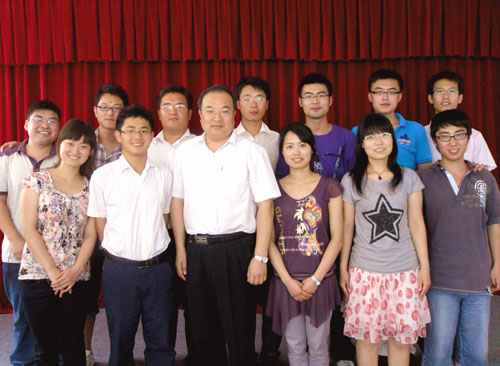 座談會最后,吳總做了總結講話,他說,我們成立“海川建設校園俱樂部”的目的是為了以這樣一種方式為社會造就最優(yōu)秀的人才,讓俱樂部會員成為職場精英,俱樂部為學生提供一個造就自我的平臺,同時也是俱樂部會員們快樂渡過大學生活的一個平臺,塑造一個實現(xiàn)人生價值的平臺。同時吳總用自己“老馬自知夕陽晚,不需揚鞭自奮蹄”的人生進取精神勉勵同學們,鼓勵同學們要趁著年輕的美好時光,不斷去學習充實自己,盡可能的使自己的知識水平提升一個臺階。并勉勵大家在以后的人生道路上,要踏實做好自己的事情,善于思考、鉆研,爭取把自己的工作做到完美;要給自己制定目標,并向著這個目標努力工作。同時邀請同學們在2012年海川集團成立60周年的時候,再“回家”來看看。座談會后,吳總與大家合影留念。