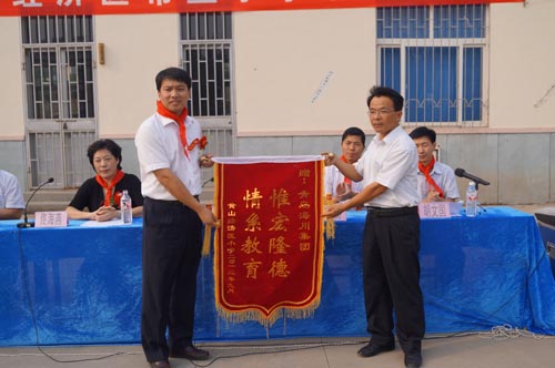 9月20日下午,秋高氣爽、陽(yáng)光明媚,膠南市黃山經(jīng)濟(jì)區(qū)希望小學(xué)落成儀式在學(xué)校大操場(chǎng)隆重舉行。激昂的國(guó)歌聲后,少先隊(duì)員們?yōu)槌鱿I(lǐng)導(dǎo)敬獻(xiàn)紅領(lǐng)巾,以此來(lái)表達(dá)孩子們的崇高敬意。一位學(xué)生代表用稚嫩的童音道出了對(duì)青島海川建設(shè)集團(tuán)及支持希望工程事業(yè)建設(shè)的各類(lèi)愛(ài)心團(tuán)體的誠(chéng)摯感謝,和臺(tái)下上千名含苞待放,映襯在陽(yáng)光里的一張張幸福笑臉一樣,他們都是祖國(guó)的未來(lái)和希望,也讓在場(chǎng)的每一位成年人對(duì)“捐資助教、功德無(wú)量”這句話有了更深刻的理解和感悟。黃山經(jīng)濟(jì)區(qū)希望小學(xué)校長(zhǎng)懷著激動(dòng)地心情向海川集團(tuán)贈(zèng)送錦旗一面,愛(ài)心助學(xué)的善舉也贏得了在場(chǎng)師生一次又一次熱烈的掌聲。集團(tuán)黃中坡副總裁代表發(fā)言,他特別指出,今年恰逢集團(tuán)成立60周年之際,本著“節(jié)儉辦大慶”和“注重社會(huì)公益性”的宗旨,集團(tuán)將主要活動(dòng)資金拿出來(lái)援建黃山經(jīng)濟(jì)區(qū)中心小學(xué),另外發(fā)動(dòng)企業(yè)職工向老一輩建筑人曾經(jīng)援建過(guò)的四川藏族甘孜地區(qū)捐獻(xiàn)衣物。通過(guò)一系列與社會(huì)接軌的主題活動(dòng),力爭(zhēng)將本次大慶辦得更有意義。最后他衷心希望膠南市黃山經(jīng)濟(jì)區(qū)中心小學(xué)的全體同學(xué)從小樹(shù)立遠(yuǎn)大目標(biāo),刻苦學(xué)習(xí),努力向上,爭(zhēng)做國(guó)家棟梁之才,立志回饋社會(huì),報(bào)效祖國(guó)。青島團(tuán)市委副書(shū)記張海軍和膠南市委副書(shū)記佟海燕也出席儀式并與海川集團(tuán)黃中坡副總裁一起為希望小學(xué)揭牌,同時(shí)就海川集團(tuán)對(duì)教育公益事業(yè)的傾情參與和大力支持給予了充分肯定和高度評(píng)價(jià)。