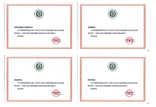 2015年8月7日,中國建筑裝飾協(xié)會(huì)以中裝協(xié)[2015]60號(hào)文件下發(fā)了關(guān)于《慶祝中國建筑裝飾協(xié)會(huì)成立30周年全國住宅裝飾裝修行業(yè)總結(jié)表彰系列活動(dòng)的表彰決定》,華聯(lián)公司榮獲四項(xiàng)國家級(jí)榮譽(yù)稱號(hào)——青島華聯(lián)裝飾工程有限公司獲“全國住宅裝飾裝修行業(yè)明星標(biāo)桿企業(yè)”榮譽(yù)稱號(hào),公司總經(jīng)理李尊強(qiáng)獲“全國住宅裝飾裝修行業(yè)功勛人物”,項(xiàng)目經(jīng)理邢文峰獲“全國住宅裝飾裝修行業(yè)優(yōu)秀項(xiàng)目經(jīng)理”,設(shè)計(jì)院院長李學(xué)芳獲“全國住宅裝飾裝修行業(yè)資深設(shè)計(jì)師”。
